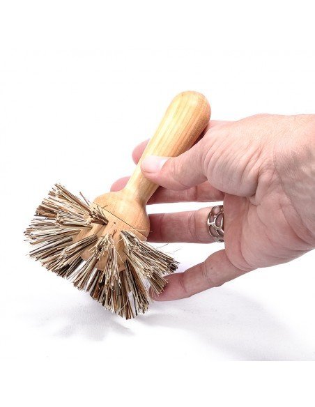 Las cerdas de este cepillo, firmes y naturales, son ideales para lavar ollas y sartenes, de manera efectiva y sin rallarlas. El mango un poco largo y redondo te permite aplicar fuerza y cogerlo con naturalidad. Pasa las cerdas por la superficie de tus útiles de cocina con un poco de agua caliente y jabón suave y ya está. Es también el cepillo favorito para limpiar sartenes de freir!