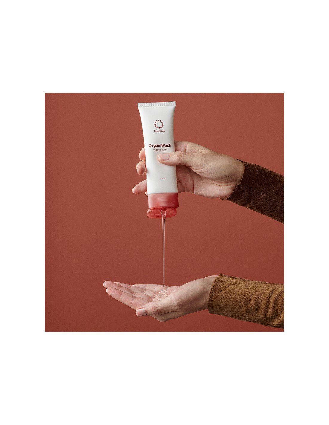 El Organiwash es un limpiador para la copa menstrual, antes o después de llevarla. Gracias a su pH controlado se puede usar para higiene íntima.