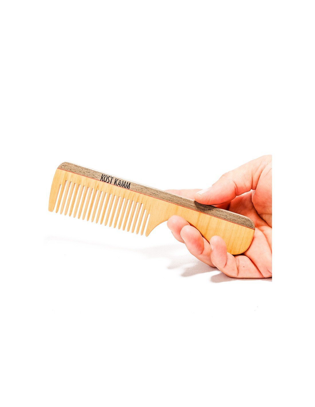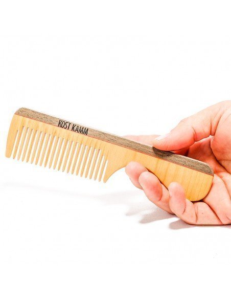Los peines son útiles tradicionales, casi antiguos pero no anticuados. Un buen peinado sigue siendo agradable, para el que se peina y en el resultado. Un buen peine es el principal estímulo a un buen peinado, y los peines de KostKamm son buenos. KostKamm está especializada en hacer peines y es un negocio familiar que lleva generaciones elaborándolos. La empresa es de cerca de Nuremberg y actual dueño, Martin Kost, ha ido renovando la compañía que hace unos 35.000 peines al año artesanalmente. En sí la compañía se estableció en 1987 (por Christian Kost, padre de Martin) que la heredó en 1996. Los peines se hacen de materiales tradicionales, hueso, cuerno, madera, etc. Gracias al boom de los materiales sostenibles y la vida un poco más verde, Kost Kamm es ahora muy popular en Alemania y es posible encontrar sus productos en toda Europa. ¿Por qué nos gusta Kost Kamm? Kost Kamm es testimonio del trabajo artesanal de generaciones. Nos gusta porque refleja un estilo de vida más lento, más natural y de pequeñas producciones sostenibles. Ciertamente no es un producto vegano y no tiene certificaciones, pero creemos que su forma de hacer las cosas artesanalmente, su pequeña escala y sus métodos tradicionales no industriales y no contaminantes, bien le merecen estar en nuestra selección.