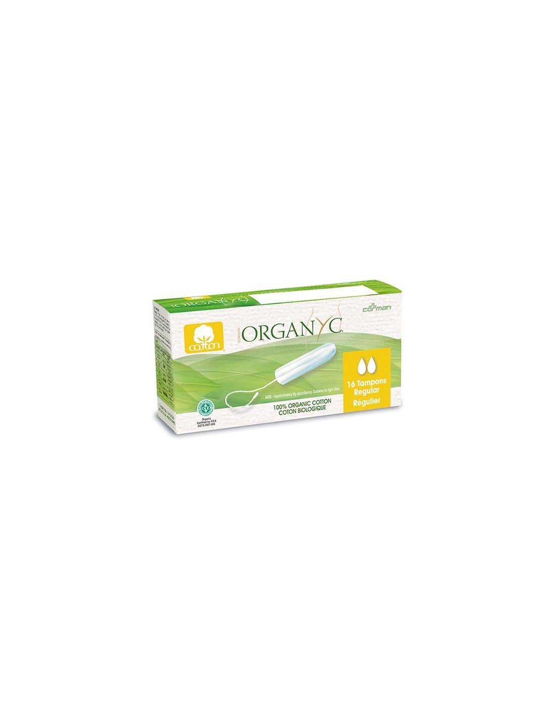 Si buscas un tampón que te asegure que sólo tendrás materiales naturales y orgánicos en contacto con tu cuerpo, Organyc es una opción muy válida. Los tampones Organyc están hechos con 100% algodón orgánico certificado y te proporcionan una magnífica absorción y protección contra las pérdidas. En este paquete de tampones de tamaño regular sin aplicador vienen 16 unidades.