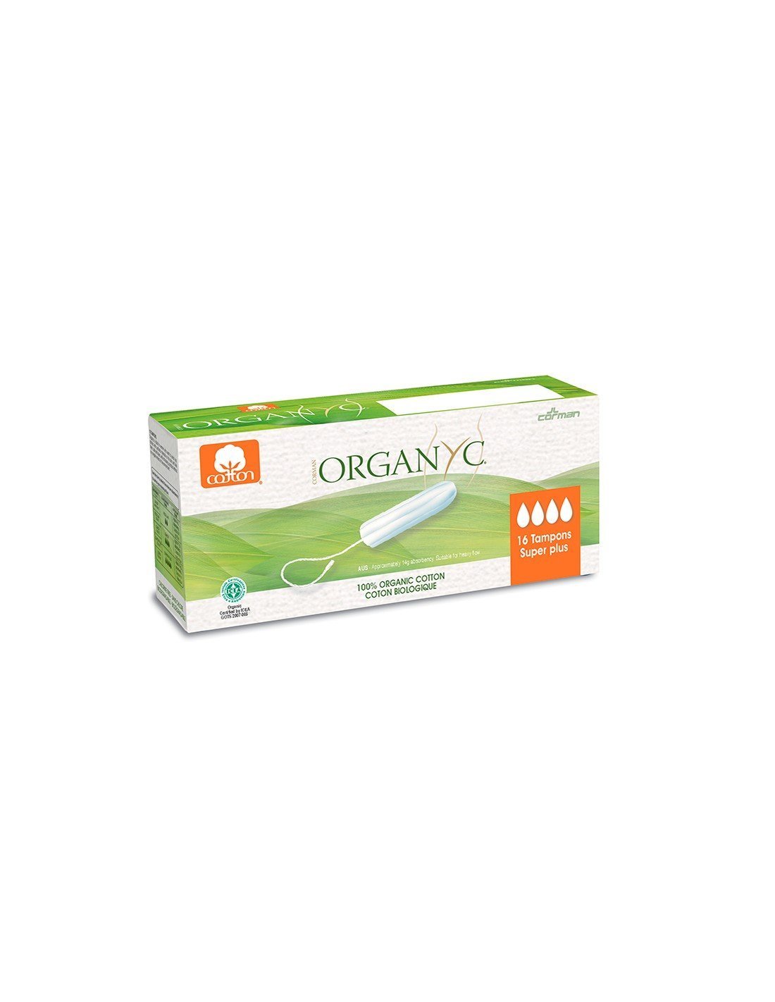 Si buscas un tampón que te asegure que sólo tendrás materiales naturales y orgánicos en contacto con tu cuerpo, Organyc es una opción muy válida. Los tampones Organyc están hechos con 100% algodón orgánico certificado y te proporcionan una magnífica absorción y protección contra las pérdidas. En este paquete de tampones de tamaño súper plus sin aplicador vienen 16 unidades.